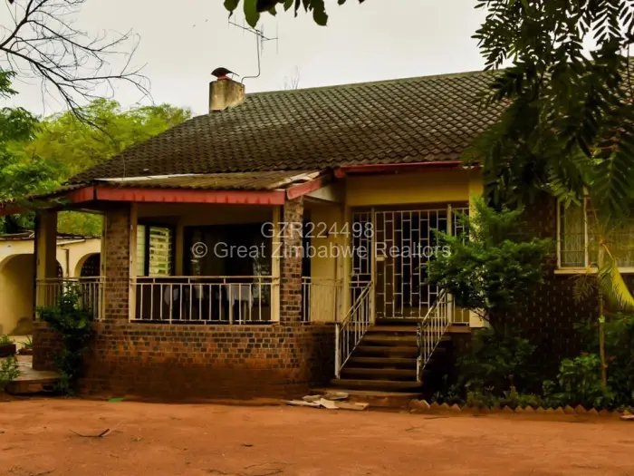 A residential dwelling consisting of 4 bedrooms; two with ensuite, separate bathroom and toilet; 2 lounges; dining ;and kitchen. A self-contained guest wing with one bedroom with ensuite; kitchen; combined lounge and dining. Additional improvements include a single staff quarters; garage and swimming pool. Stand size 4672sqm. Title deeds available. Price Guide: US$120 000